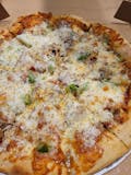 A 12 cracker crust pizza with your choice of one topping from our variety including meats, vegetables, and spices.
